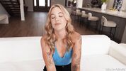 Молоденькая блондинка Lola Cheeks узнала от подруг секретное слово и стучится в дверь. Ей открывает черный парень и она произносит слово-пароль сumfiesta. Сразу понятно, чего хочет девушка с такими большими и добрыми глазами. На диване блондинка показывает красивое тело с татуировками, киску и натуральные маленькие сиськи. Конечно такую шлюшку ебать и ебать. Kaby Snow трахает блондинку своим черным хуем и кончает ей на лицо и в рот.