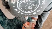 Подтянутой блондинке мало тренировки, она чувствует, что выложилась не до конца. Лучший способ наверстать нагрузку - от души потрахаться. Спортивная красотка скачет на члене, с удовольствием представляя, как в это время горят ненавистные калории. А ее парень качок ловит кайф от того, что на его члене прыгает сексуальная наездница в шелковых трусиках и кроссовках.