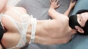 Страстный анал с худой брюнеткой с маленькой грудью в белом белье.