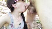 Обычно влюблённые парочки ходят в лес на пикник, но эти развратные ребята удалились в чащу, чтобы обоссать друг друга. Девка в очках вывалила свой небритый вареник и нассала на хуй парня, а затем уже жидкость из его члена оказалась в глотке этой тёлки, она отсосала член и напилась вдоволь.