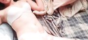 Сует член в пухлую писю брюнетки, сдвинув набок белые трусы.