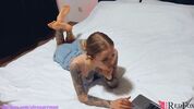 По уши забитая татуировками стройная русская девушка в шортах ждет не дождется, когда же к ней в гости заскочит ее приятель. Сам по себе парниша ничем не примечателен, но вот его член вызывает желание. Как только гость появляется на пороге, красотка делает минет, а потом додрачивает ствол, и сперма льется ей на руки.
