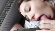 Толстый член во рту и киске красивой татуированной брюнетки с окончанием в писю.