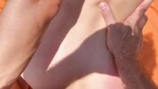 Отправившись отдыхать на пляж со своей стройной женой, мужик решил снять пикантный фильм. Он лижет гладко выбритую киску на пляже и трахает свою даму, пока молчаливый оператор фиксирует происходящее на камеру. Похоже, ей нравится трахаться в публичном месте на природе, риску спалиться перед отдыхающими.