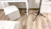 Вернулся домой, а русская SkinLovers ничего не приготовила. Зато у татуированной молодой девахи в очках сексуальный прикид, да еще и бокальчик вина тяпнула, чтобы раскрепоститься. Она предлагает сделать минет и потрахаться. Парень не против, он трахает подругу стоя и кончает в рот и на лицо.