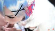 Симпатичная русская косплейщица с голубыми волосами снимает пикантные фильмы под ником Sweetie_Fox. Ее фишка - яркий макияж, голубые короткие волосы и прикольные костюмы. Сегодня, например, она оделась в горничную и ебется с парнем в кровати. Чувака дико заводит ее кавайный маскарад!