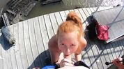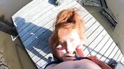 Рыжая телка не отличается красотой, поэтому решила брать харизмой и умением классно трахаться. Она готова делать минет и ебаться в любом месте, даже согласна делать это на природе, на публике. А еще она очень любит, когда парень снимает секс с ней на камеру. Сегодня чувак жарит давалку на речном пирсе и кончает ей на попку.