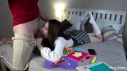 Она плохо учится в колледже, совершенно не старается. А ведь за него приходится дорого платить. Брат решил взяться за воспитание сводной сестры и трахает ее на кровати. Непонятно, каким образом это поможет сисястой русской брюнетке взяться за ум, но клетчатую юбку она точно измяла в хлам.