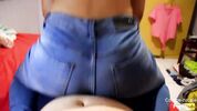 Трётся жопой об стоячий член парня и хочет чтобы он кончил ей на одежду.