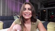 Умелая дрочка члена от красивой опытной шлюхи: получает сперму на лицо и мастурбирует пизду с интимной стрижкой.