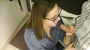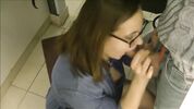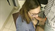 Тёлка в очках делает минет по-любви пацану, в примерочной решила соснуть хуйца.