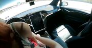 Я заехал за своей рыжей подругой и мы начали ебаться в машине Тесла, на полном ходу. Стерва запрыгнула мне на хуй, когда я был за рулём и стала прыгать сверху на члене, как сумасшедшая наездница. Я включил автопилот в моей Тесла и трахаю на скорости, возбуждённую бабу.