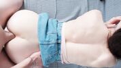 Задрал повыше джинсовую юбку русской девчонки и насаживает жопой на болт.