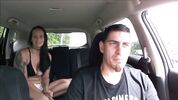 Семейная пара поехала за город, на природу. Внезапно брюнетке захотелось секса в машине. Она стала сосать член мужику, пока тот за рулем. Но всё таки хватило ума остановиться и трахать бабу раком, наполнив полную пизду спермы.