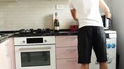 Худая русская девка заманила парня подруги и отняла ключи от машины, чтобы трахнуть его на кухне.