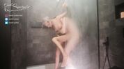 Тощая высокая блондинка зашла к любимому в душ потрахаться стоя.